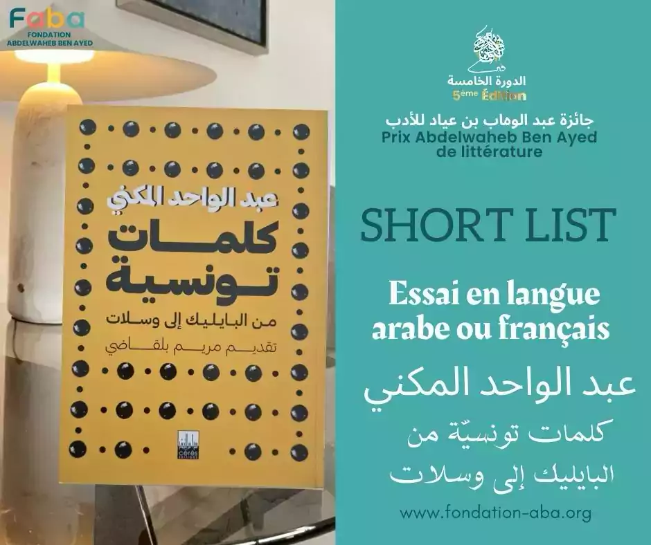 وتؤكّد جمعية عبد الوهاب بن عيّاد التزامها المتواصل بدعم المواهب الصاعدة وتعزيز أدب تونسي حيّ، أصيل وطموح.
